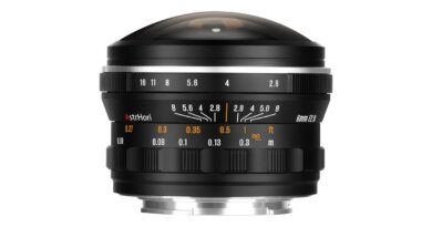 Dodatkowe funkcje: Przełącznik ogranicznika zakresu ostrości (2,5 m–5 m, 5 m–nieskończoność, pełny zakres), regulacja prędkości ręcznego ustawiania ostrości (trzy tryby), funkcja preset focus.