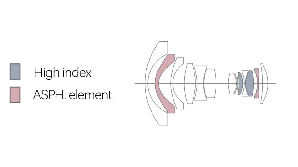 Dwa elementy ED i jeden asferyczny w konstrukcji optycznej skutecznie redukują dystorsję i aberracje, co jest kluczowe w ultra-szerokokątnych obiektywach, gdzie zniekształcenia krawędzi są częstym problemem. Obiektyw oferuje dobrej jakości obraz, co potwierdzają pierwsze doniesienia z testów.